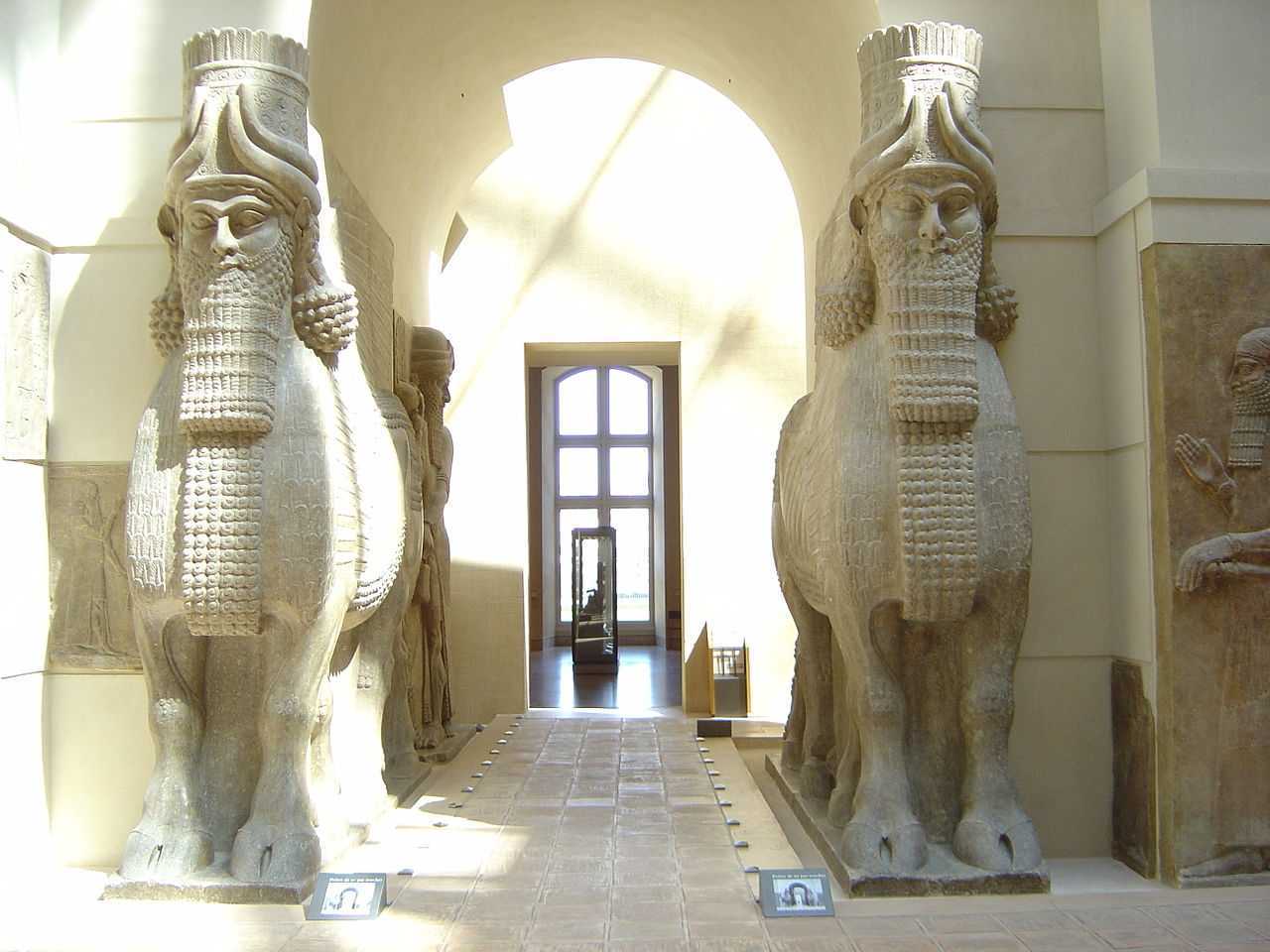 Полулюди и полубыки – приветливые существа «ламассами» охраняли вход во дворец Дур-Шаррукин (Форт Саргона). Датируются они 721-705 периодом до н.э., а найдены были в 1843 г. Паулем-Эмилем Боттой.