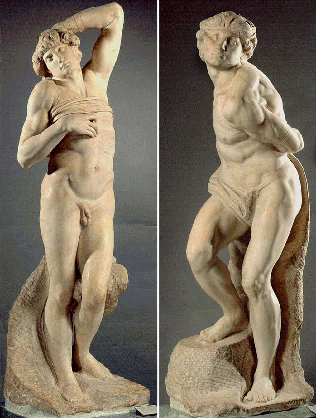 Эти две скульптуры великого мастера – гордость галереи Лувра. Они задумывались как цикл из 6-и фигур, но остальные остались незавершенными и выставляются во Флоренции.
