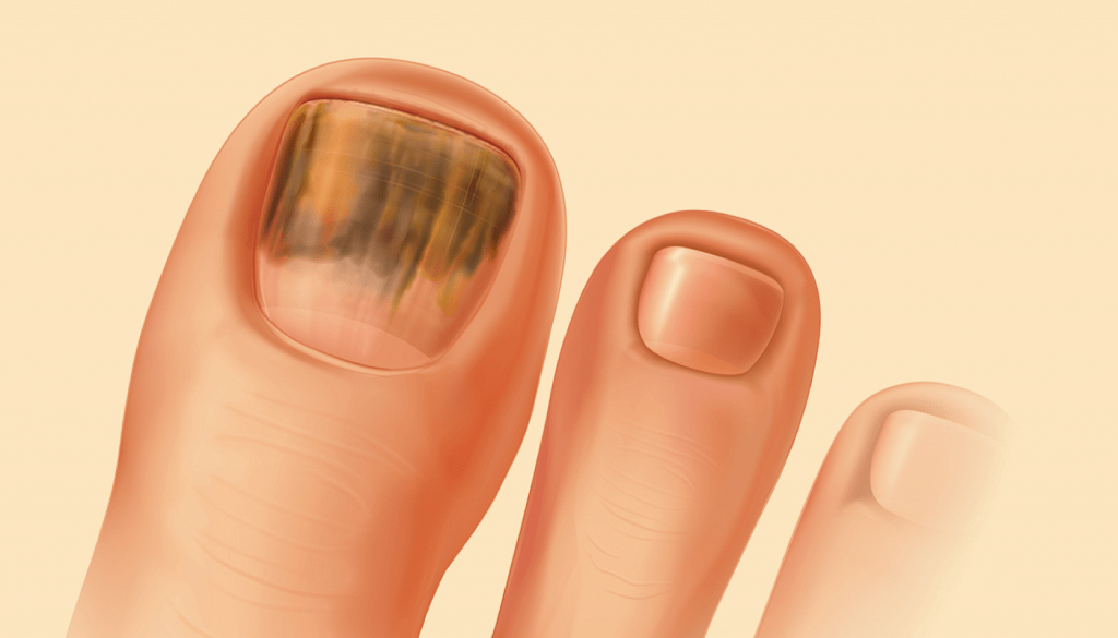 - любые длительно протекающие кожные заболевания; особенно часто причиной является грибок пальцев и стоп ног;