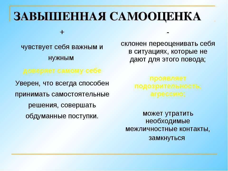 Виды и уровни самооценки